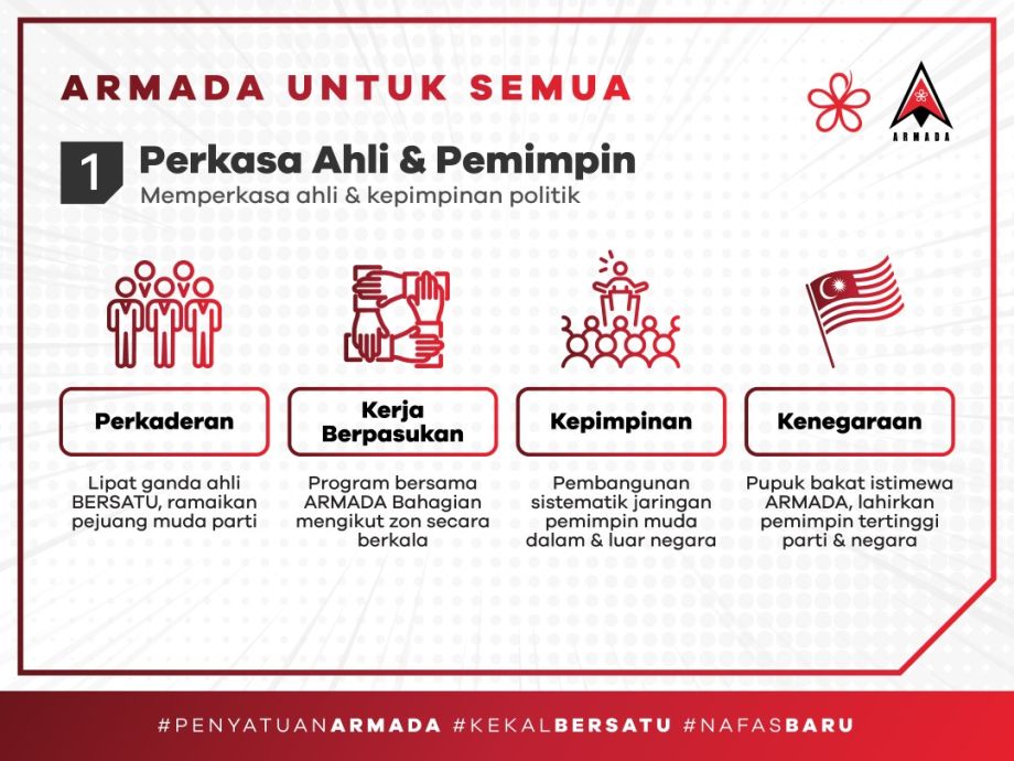 Sebagai Ketua ARMADA Nasional, saya akan memastikan bakat dan kebolehan ahli dan pemimpin ARMADA di setiap Bahagian dan Negeri diperkasakan bagi mencapai matlamat parti dan menyumbang kepada agama, bangsa dan negara Malaysia yang tercinta.