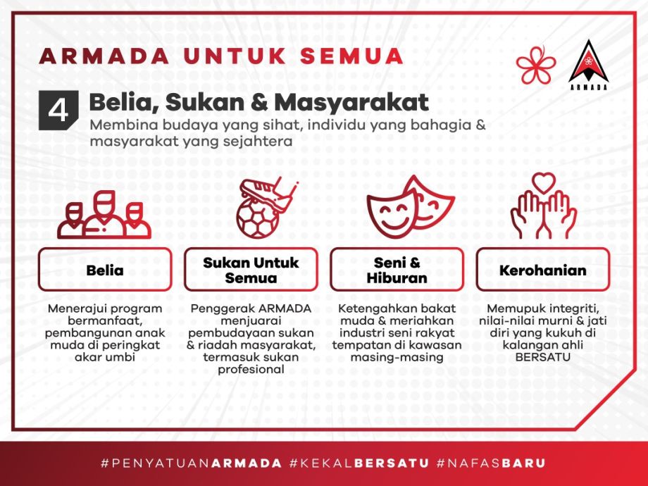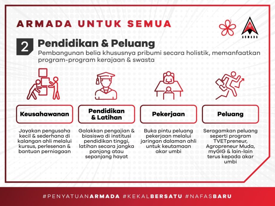 Untuk membentuk ARMADA sebagai sebuah organisasi kalis masa depan, berwibawa dan menjadi pilihan anak muda, kita perlu memberikan lebih banyak ruang kepada warga ARMADA melalui peluang-peluang keusahawanan, pendidikan, pekerjaan dan akses kepada pelbagai inisiatif yang dikelolakan oleh agensi dan institusi swasta.
